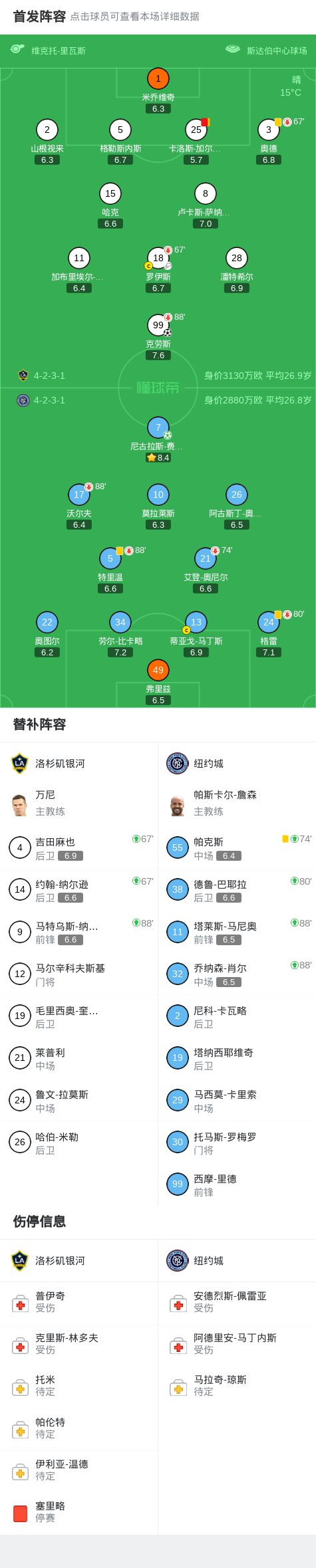 北京时间2月23日美国职业大联盟 常规赛,洛杉矶银河主场对阵纽约城。洛杉矶银河克劳斯破门。纽约城尼古拉斯-费尔南德斯破门。最终比分洛杉矶银河 1-1 纽约城。