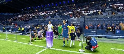 双方球员入场,比赛马上开始