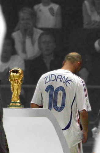 被红牌罚下的齐达内径直走进了更衣室,齐达内与大力神杯擦肩而过的镜头成为了经典。