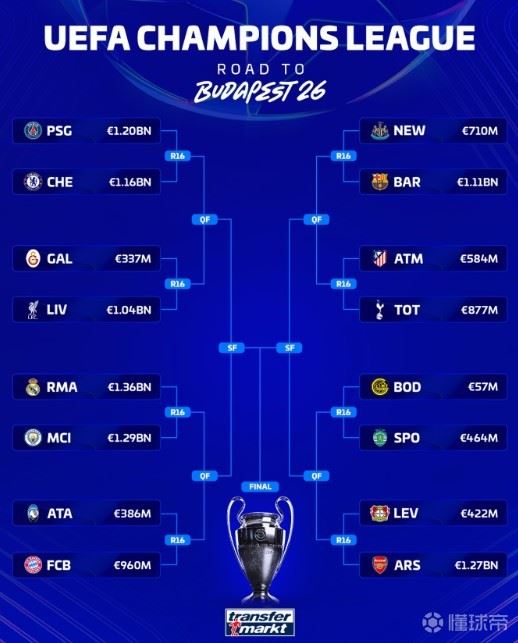 德转列欧冠16强对阵身价