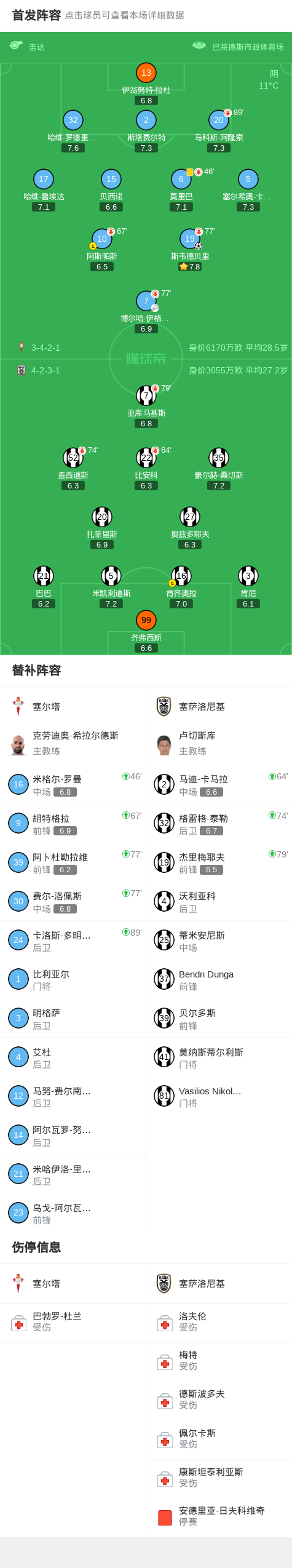 北京时间2月27日欧足联欧洲联赛 淘汰赛附加赛次回合,塞尔塔对阵塞萨洛尼基。塞尔塔斯韦德贝里破门。最终比分塞尔塔 1-0 塞萨洛尼基。两回合总比分塞尔塔3-1塞萨洛尼基。