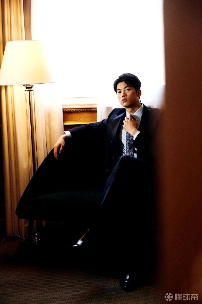 北京时间2月26日,奥运冠军汪顺身着深蓝色西装搭配印花丝巾的造型亮相米兰时装周。