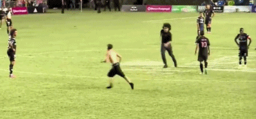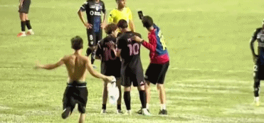 比赛的第88分钟,一位球迷赤裸上身冲入球场,他绕过梅西直奔山谷独立禁区。随后,两位球迷冲入球场。