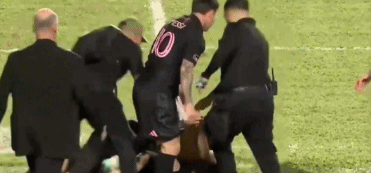 在俱乐部友谊赛里,迈阿密国际以2比1的比分战胜山谷独立。比赛的最后时刻,多名球迷冲入球场,并且将梅西撞倒在地。