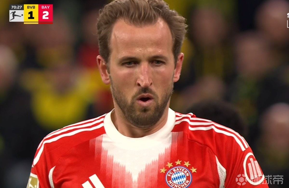 此役客场对阵多特蒙德,首发出战的凯恩在下半场打入两球,帮助拜仁反超比分。