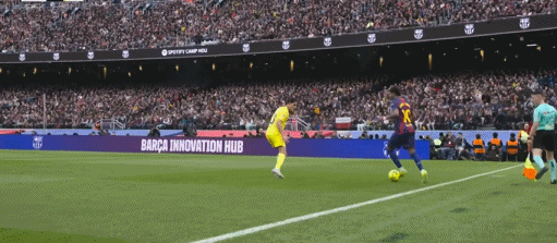 第23分钟,亚马尔内切射门,球被儒尼奥尔没收