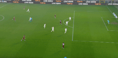 第35分钟,扎卡尼传中,贝拉亚内射门被门将扑出