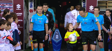 第1分钟,双方球员步入赛场,比赛即将打响