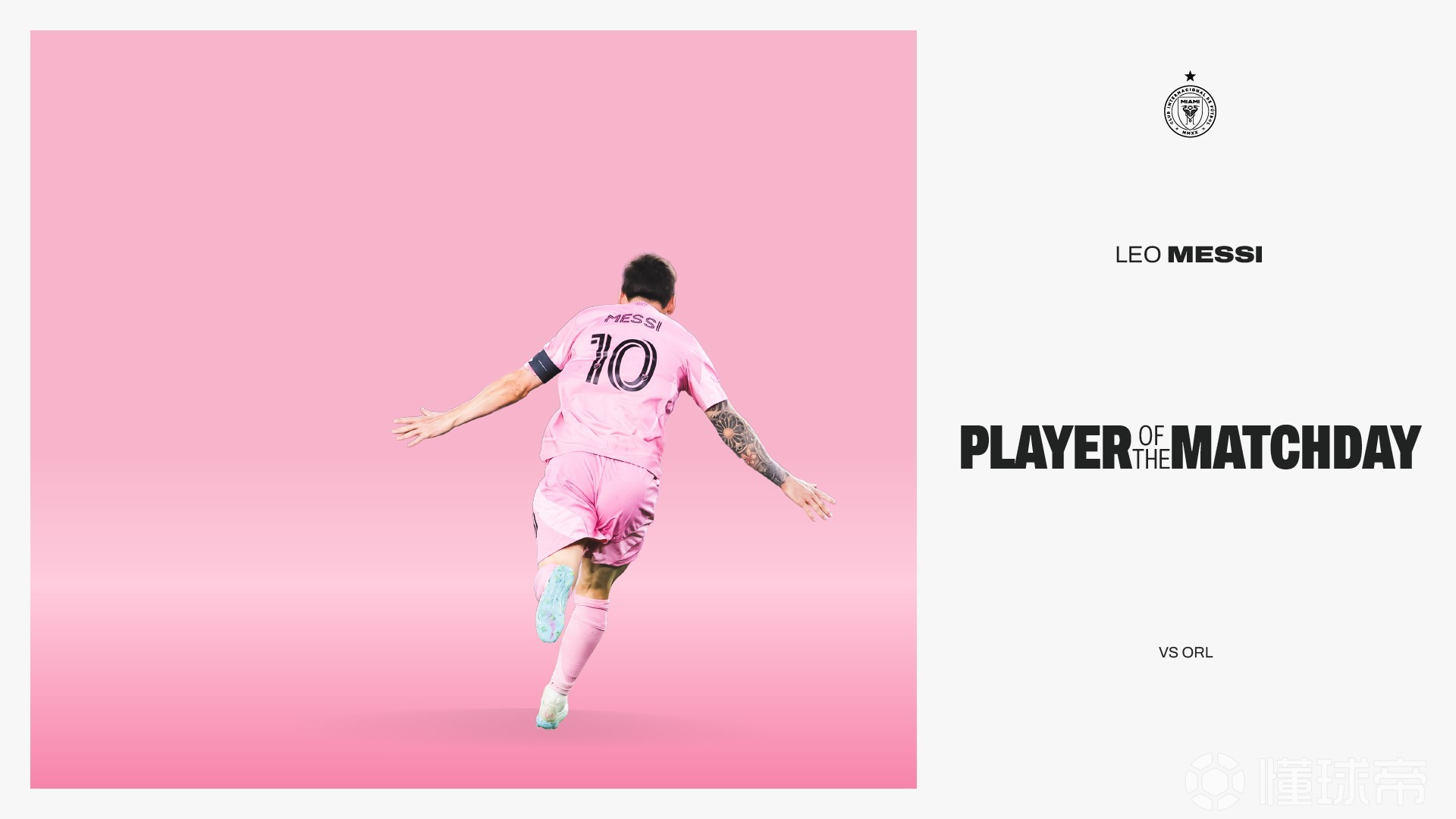 官方消息,梅西凭借对阵奥兰多城的出色表现当选美职联第二周最佳球员。