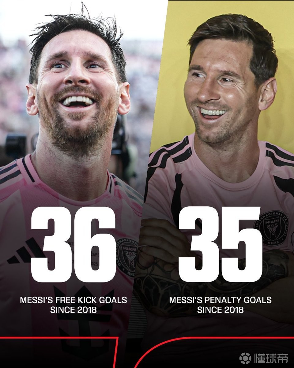 据该媒体的数据统计显示,2018年来,梅西一共打进36记直接任意球,而同期他的点球进球却只有35粒。