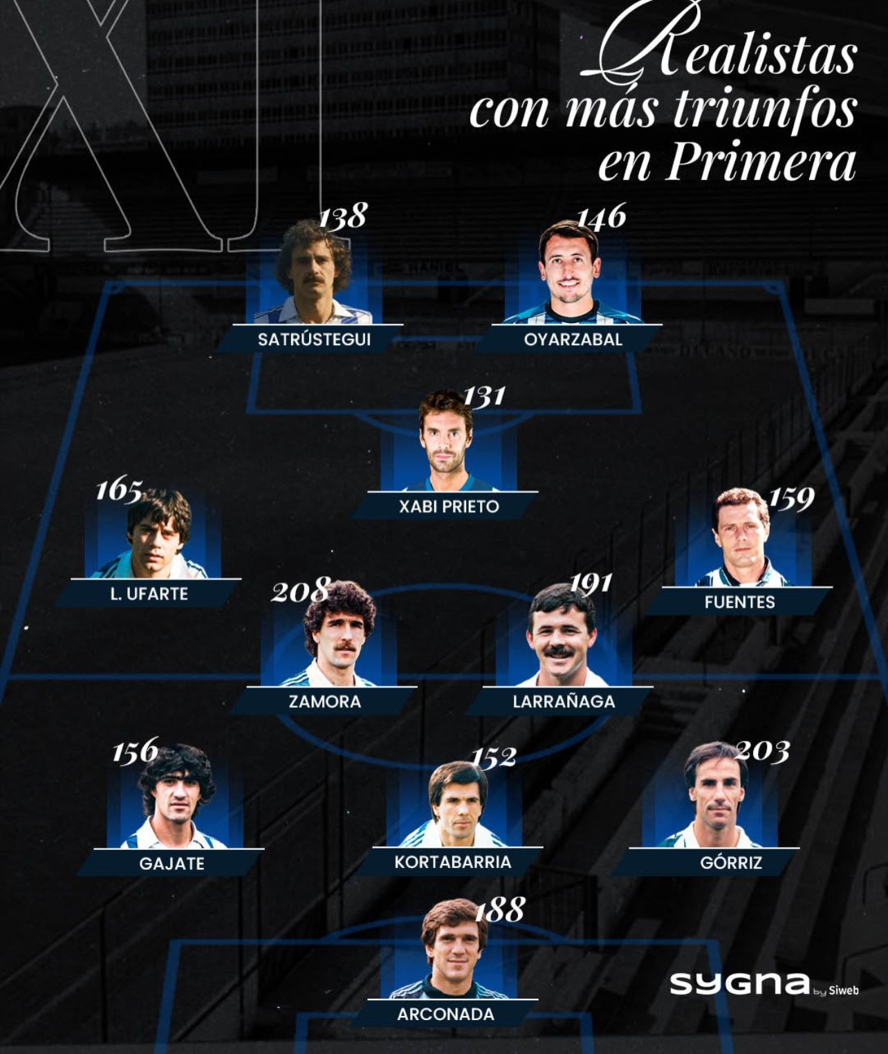 中场:普列托,131场;乌法特,165场;富恩特斯,159场;萨莫拉,208场;拉腊尼亚加,191场