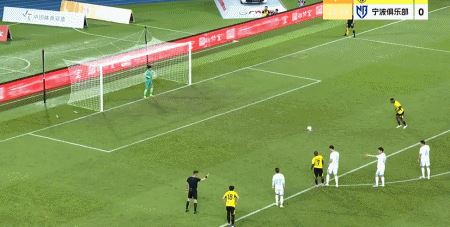 第23分钟,卡马拉造点,尼康主罚点球命中,广东广州豹1-0宁波